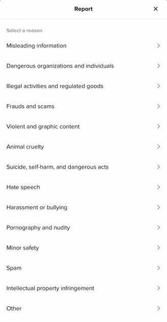 First step, press "IT'S ABUSIVE OR HARMFUL". Then after that you see new options and press "IT'S DISRESPECTFUL OR OFFENSIVE".